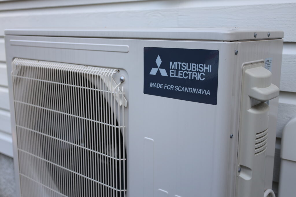 Ulkoyksikön Made for Scandinavia -merkki viestii, että kyseessä on virallisen maahantuojan tuoma Mitsubishi Electricin malli, joka on suunniteltu pohjoismaisiin olosuhteisiin.